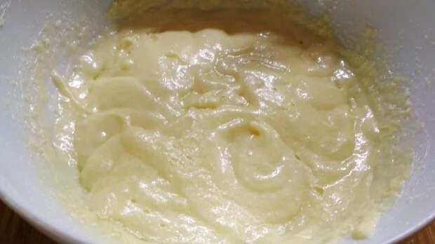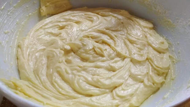 Размягченное сливочное масло взбить с сахаром. Масло я не растапливаю, а нарезаю на маленькие кусочки и даю постоять, чтобы оно размягчилось до комнатной температуры. Взбивать слишком сильно не стоит. Просто усердно смешиваете сахар с маслом. Ну или добела, если вы фанат.