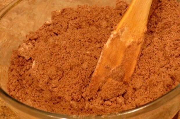 Затем добавь к полученной массе какао, муку и тщательно перетри все ингредиенты.
