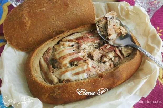 Внешне он похож на обычную буханку хлеба, но внутри него очень вкусная начинка. Длительное запекание не оставляет никаких шансов сохраниться рыбным косточкам, поэтому такой пирог не опасно есть даже детям. У меня под рукой оказался крупный свежий карп и я из него смогла удалить только позвоночник и рёбра. Остальные довольно крупные косточки остались в филе, и я очень волновалась за результат. Ну, невозможно их было извлечь, не раскрошив рыбу! Оказалось, что напрасно беспокоилась - ни одной косточки не осталось и в помине! Они бесследно распАрились и абсолютно никому не достались.
