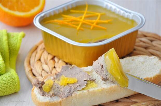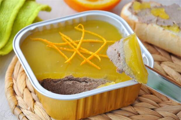 Залить поверхность охлажденного паштета остывшим апельсиновым желе,