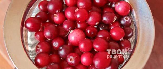 1 Свежую клюкву промыть от болотного мусора, обсушить, откинув на сито.