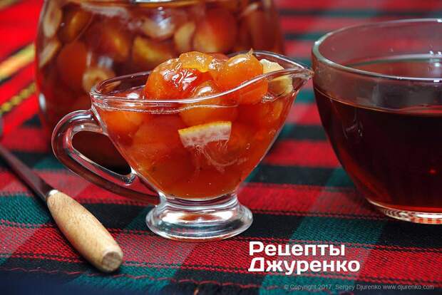 - Перед последним нагреванием надо добавить в варенье тонко нарезанные дольки лимона, и только после этого довести варенье до кипения.