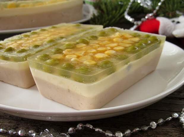 Если вы любите холодец, но у вас нет времени его готовить, а обычное заливное уже надоело, то настоятельно рекомендую вам попробовать этот интересный рецептик! На холодец конечно не похоже, а вот на заливное вполне, только намного нежней и интересней))) Я бы сказала, что это заливное куриное суфле, очень вкусное, красивое и оригинальное!