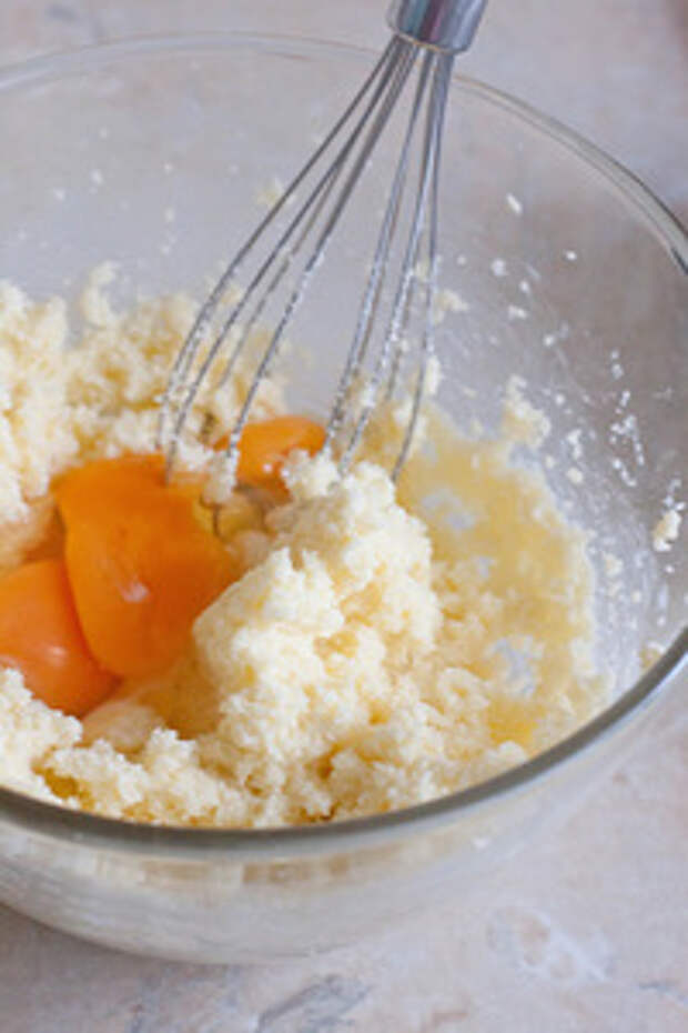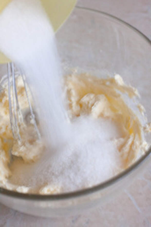 В отдельной посуде взбейте масло с сахаром, добавьте яйца, мед и еще раз взбейте.