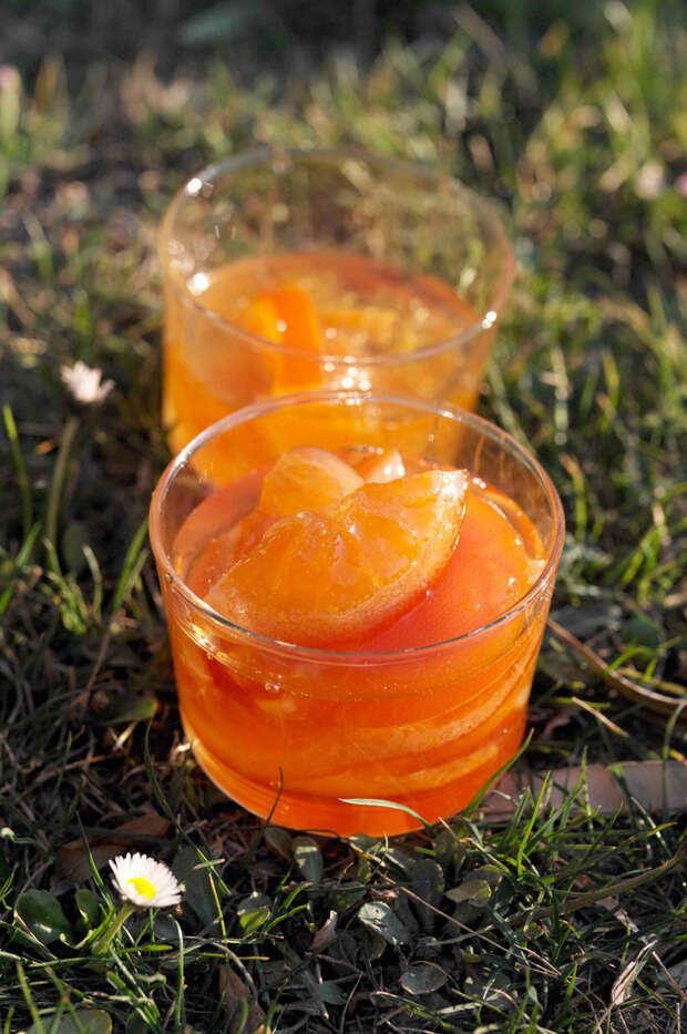 Апельсины хорошо помыть и прямо в кожуре порезать средними дольками – полукольцами.